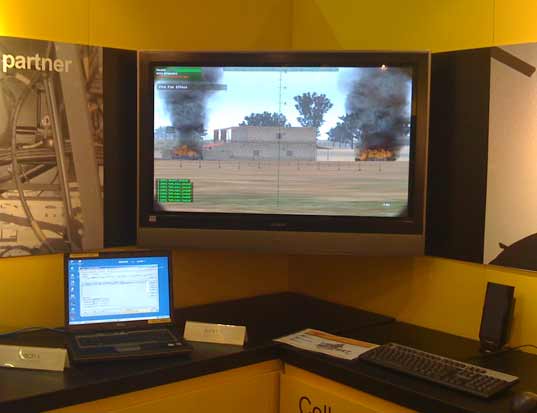 The prototype allowed Forward Observation Officers (FOO) to survey the virtual scenario (at ITEC we had a ground view as well as a UAV view) and bring artillery fire onto targets using the actual FC-BISA system used in the British Army’s Warrior APC’s.