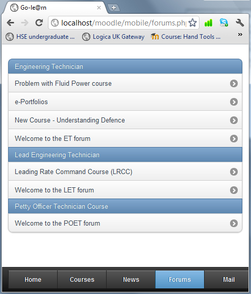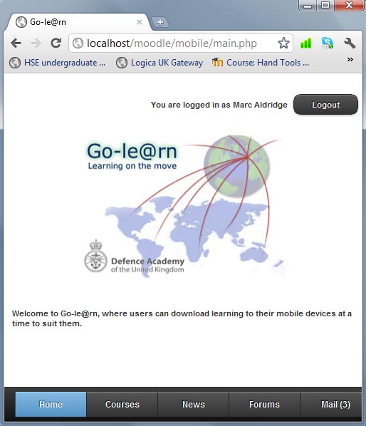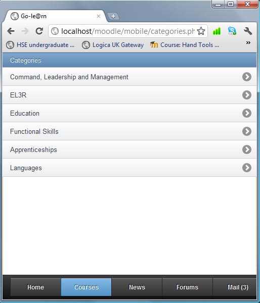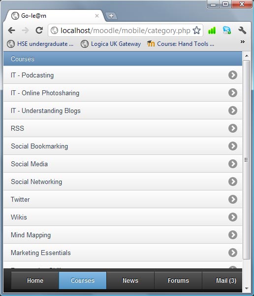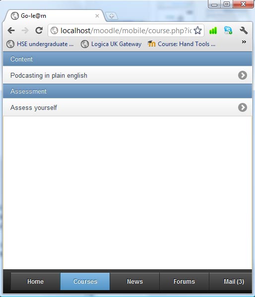 Therefore I have started work on a slimmed-down version of my app, that has been developed using JQuery Mobile and allows a student to access Moodle from the browser of their device.